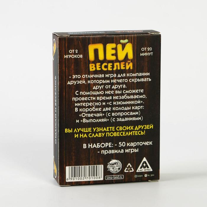 Купить игра для компании "пей веселей" 50 карт от 180 руб. с доставкой до пункта выдачи в Кологриве. Интернет магазин ДекаМаркет. Оплата при получении.